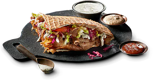 Get wrapped. Fresh lettuce, juicy tomato, onion and red cabbage served with your choice of doner meats. Sealed in a flatbread wrap with our three signature sauces.